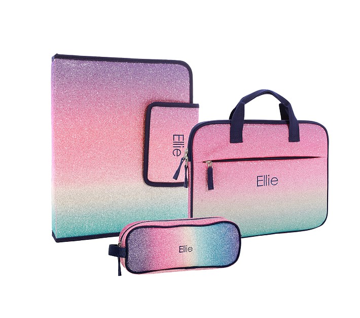 Mackenzie Rainbow Ombre Sparkle Glitter School Accessories Bundle