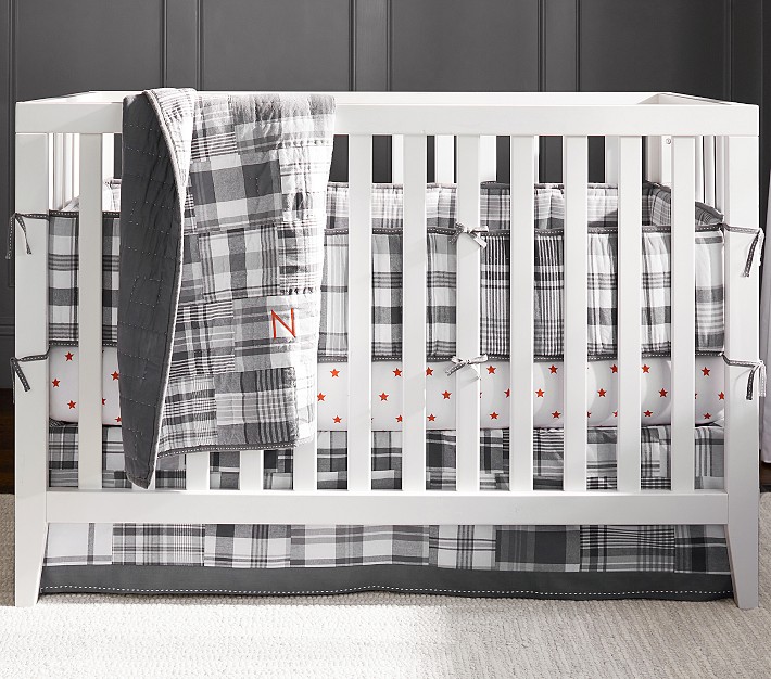 Inspired by original madras fabrics from India, this collection brings classic preppy style to the nursery. A variety of plaids in uneven patches are pieced together to give our quilt and bumper their handmade look.