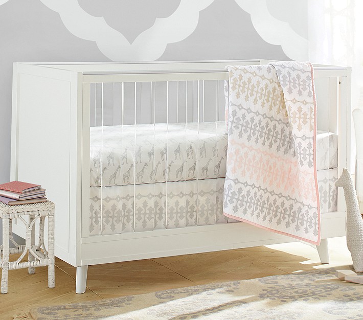 - Nursery set includes a fitted crib sheet, crib skirt, and either a quilt or bumper.