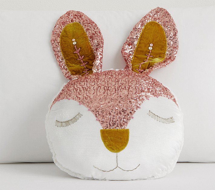 This sweet snoozing bunny pillow gives their space a glam critter accent! It’s designed with rose gold sequins and a fuzzy back for a chic yet cozy look.
