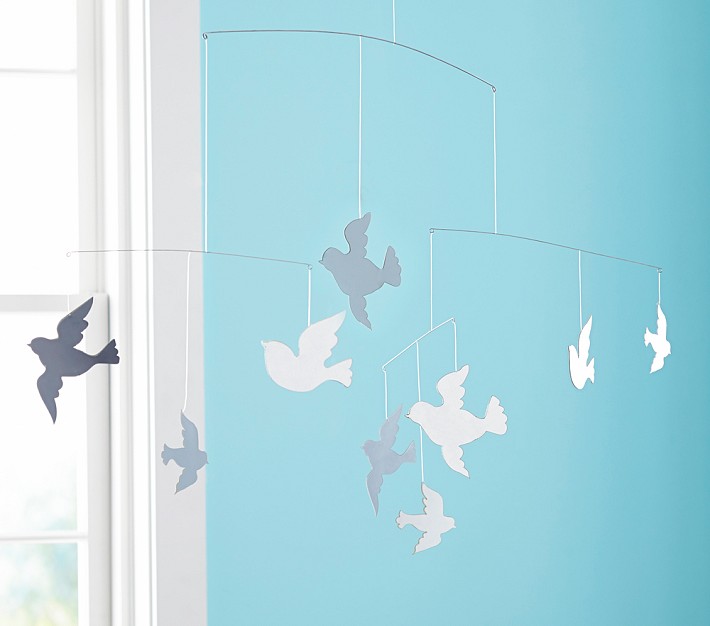 Add light and movement overhead with this flock of migrating, mirrored birds, designed to reflect color and light around the room.