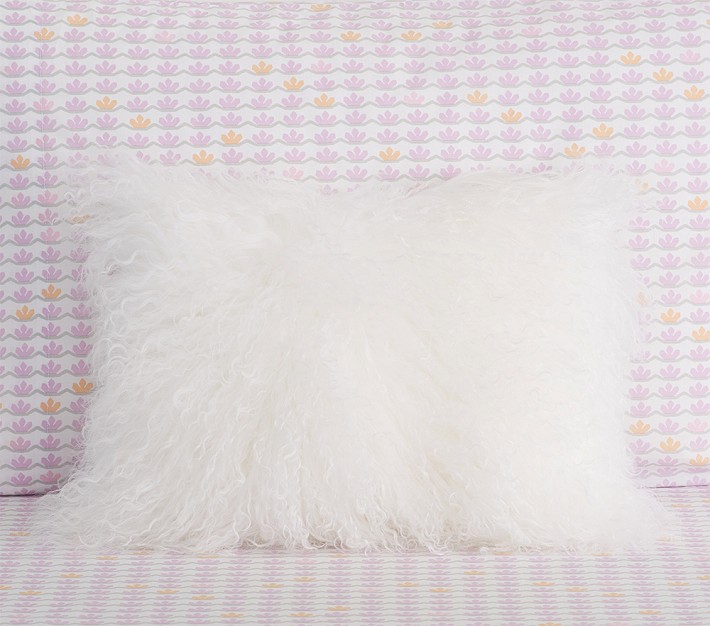 This superplush pillow brings cloud-like comfort and playful style to your little one's room. Made of wool from a shorn lamb, it's a guilt-free fur alternative.