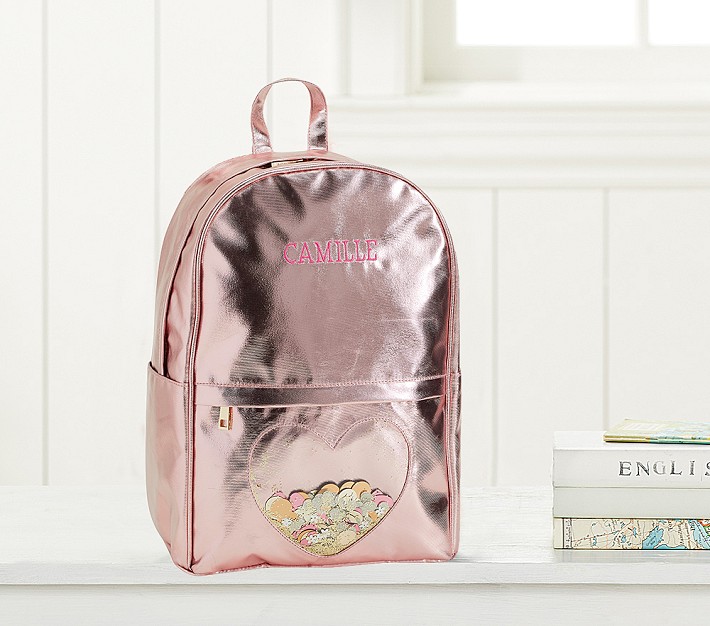 Send them to school in stunning, shining style! This superglam blush backpack is made of water-resistant polyester with sturdy zippers and adjustable straps, plus plenty of pockets to hold all their things. Designed in collaboration with renowned fashion designer Monique Lhuillier, it marries functionality with her contemporary and magical design aesthetic.