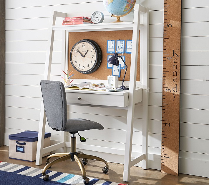 Thoughtfully designed with classic style and lasting durability in mind, our Morgan Leaning Wall Desk can truly do it all. Sturdily crafted from a hardwood frame and boasting timeless brushed nickel accents, it’s perfect for small or shared spaces and has plenty of room for storage and studying. This smartly designed space-saver has a corkboard built in to pin up notes and reminders.