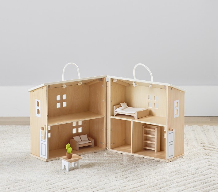 - Doll house folds for easy storage and has sturdy carry handles.