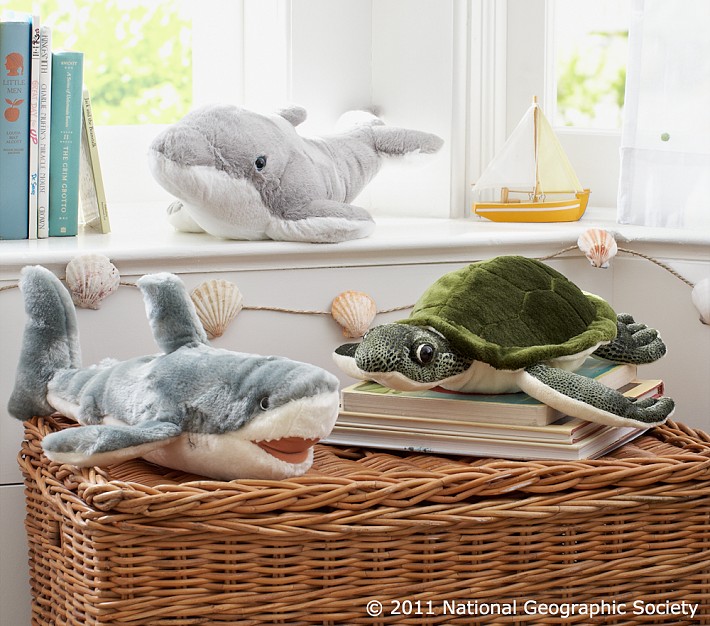 From the shark’s stitched gills and bright white teeth to the sea turtle’s weathered face and textured shell, our collection of plush animals is full of lovable, huggable character.