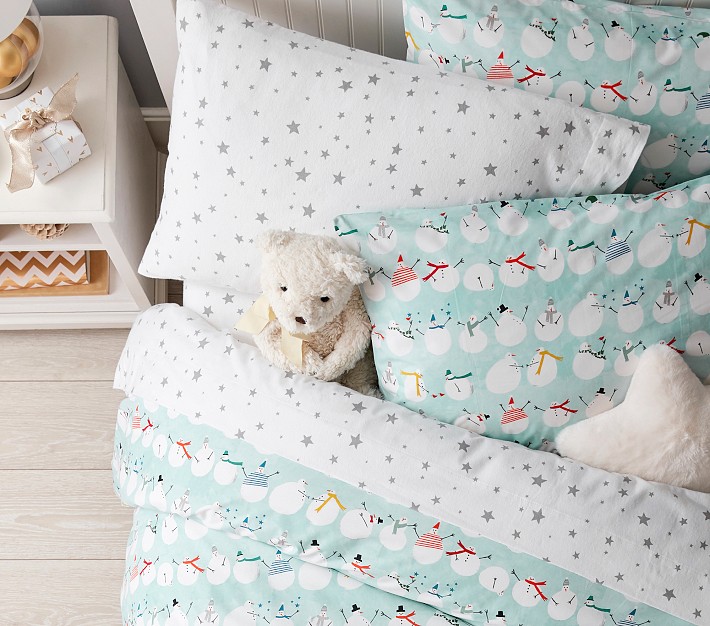 | Organic Cheery Snowman Duvet, Twin, Aqua Multi | No Longer Available |