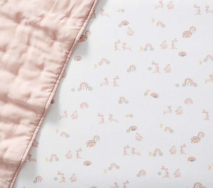 | Organic Flannel Rainbow Bunny Crib Fitted Sheet, Crib Fitted, Blush | No Longer Available |