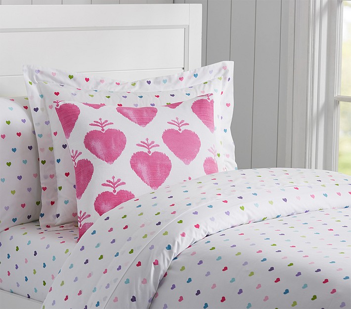 This classic heart print easily layers with other patterns to mix and match with a variety of our bedding collections. Supremely soft and meeting the strictest healthy production standards, our organic duvet cover provides lasting comfort.