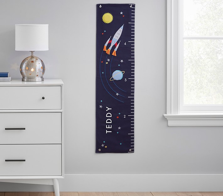 As they rocket up in height, track their trajectory on our Outer Space canvas ruler. The lines measure all the way up to 5 feet, so your child can keep tabs from birthday to birthday month to month, and day to day.