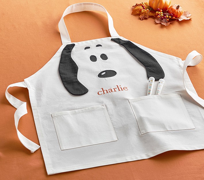 Thanksgiving is upon us, so let your little chef help you in the kitchen. Protect their nice clothes with this playful apron inspired by our favorite Peanuts® dog, Snoopy®.