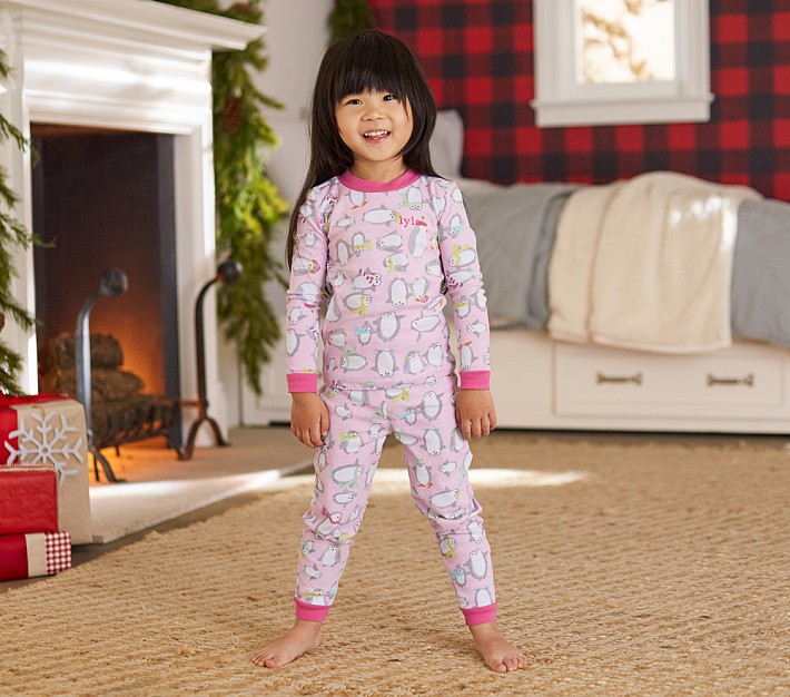 Cute illustrations of penguins in winter wear are printed on our softly ribbed pajamas to keep kids cozy on winter nights.