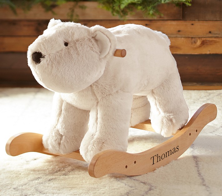 This polar bear is waiting patiently for a very big hug. Featuring ultraplush fur and sturdy wooden runners, our rocker is low to the ground and easy for little ones to rock.