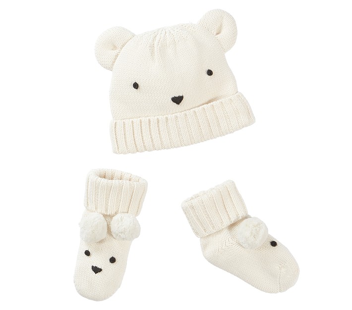 | Polar Bear Knit Hat And Bootie Set, 0-3, Ivory | No Longer Available |