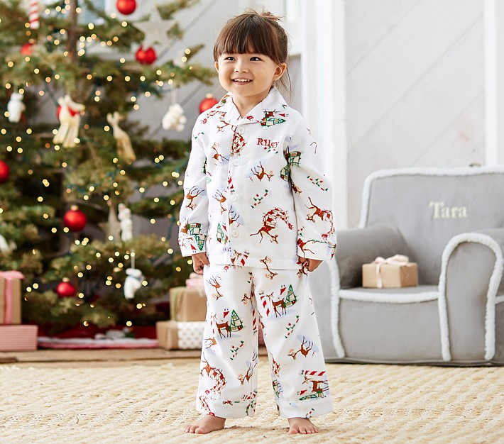 Your little elf will shout out with glee with these supercomfy flannel pajamas that feature Rudolph the Red-Nosed Reindeer® guiding Santa’s sleigh.