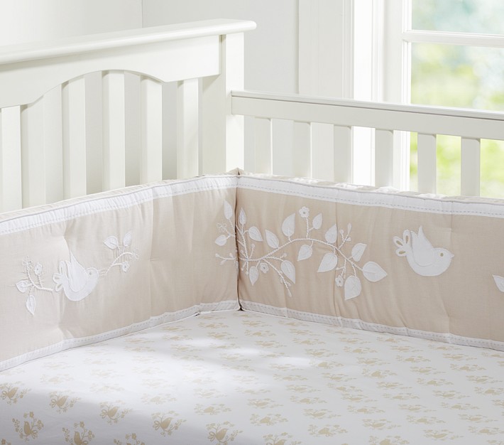 - Nursery Bumper Bedding Set includes fitted crib sheet, bumper and crib skirt.