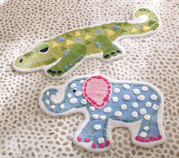 These colorful cushy mats provide wet feet a soft spot to land after the bath. Our alligator and elephant designs feature cut and looped cotton terry for texture and dimension.