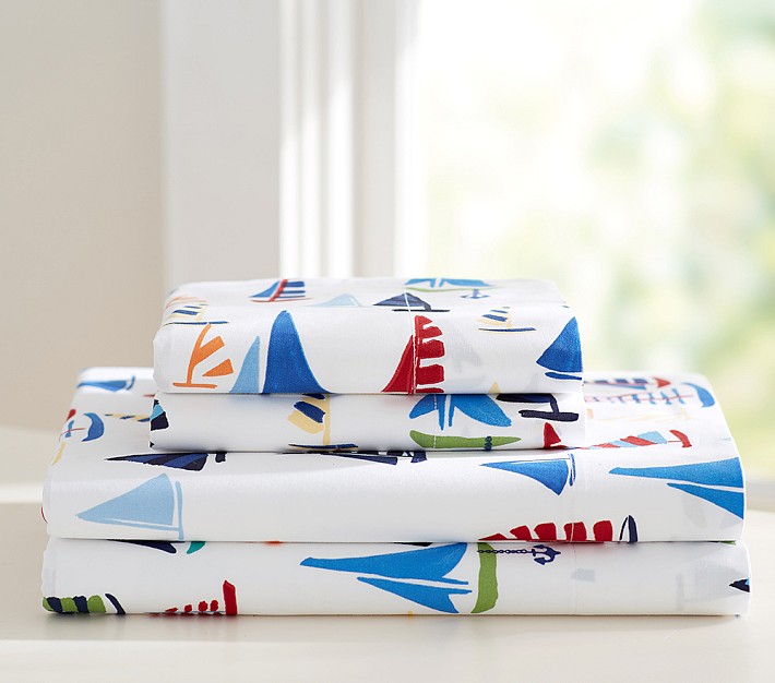 Inspired by a warm day on the San Francisco Bay, our soft sheeting features colorful sailboats on a white ground.