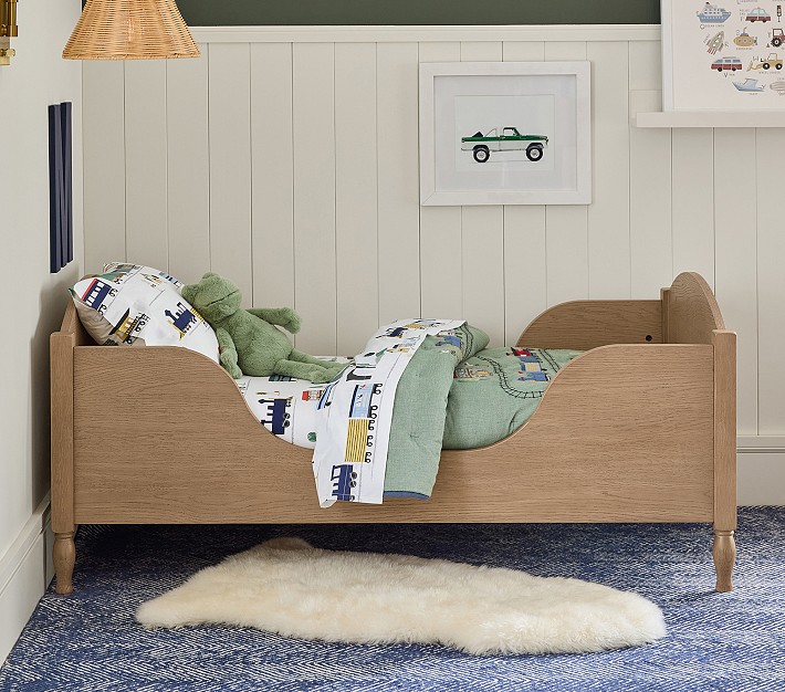 When your child is ready to move out of the crib, this cozy toddler bed is the perfect next step. Its high sides create a snug little nighttime nest, yet it’s easy for kids to crawl into and out of unassisted.