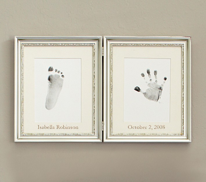 Display your newborn's footprint and handprint with this beautful silver leaf wood frame to create a timeless display.