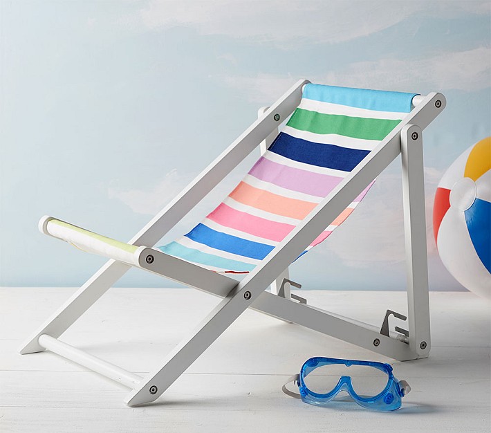 Kick back on a rainbow with the colorfully striped sling chair. Crafted from solid Eucalyptus wood and easy-to-clean polyester, this sunshine essential is easily packable and stackable for poolside parties or summers by the beach.