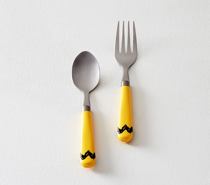 - Spoon and fork feature the artwork of Charlie Brown's® shirt on the handles.