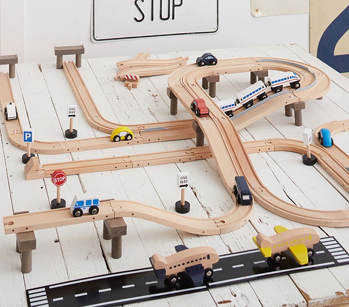 | Wood Play City Train Track Set - Cars, Airplane, Air Strip | No Longer Available |