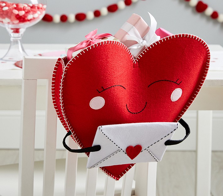 Add sweet flair to their seat with this felt chairbacker. Featuring a smiling heart holding an envelope meant for carrying valentines and an interior big enough for gifts, it makes mealtimes more playful and spirited.
