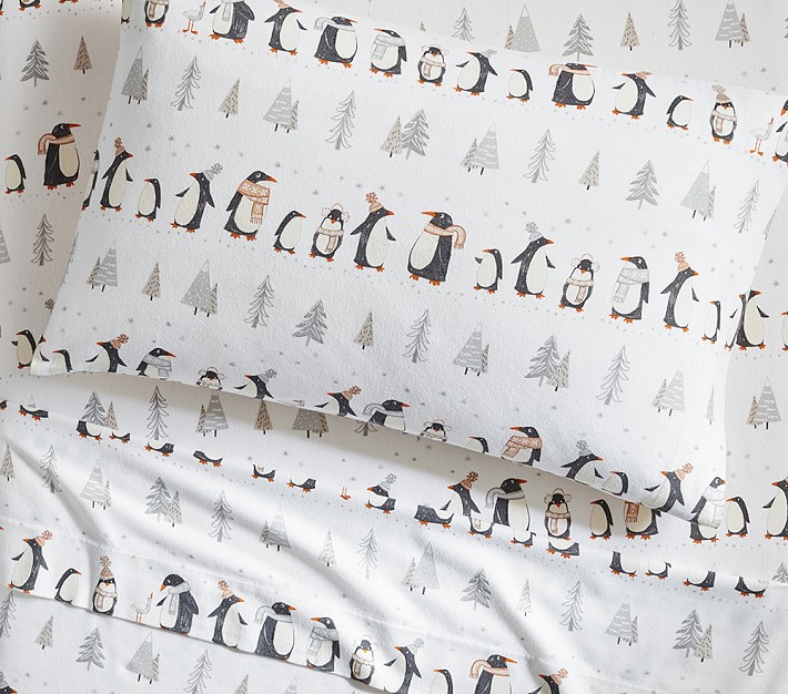 Warm and snuggle-approved sheets are a must-have for your child's sleep space. The soft blend of flannel and cotton is ensuring that your child's room is free of harmful chemicals and synthetics. A penguin design sets a charming and seasonal tone for their room.