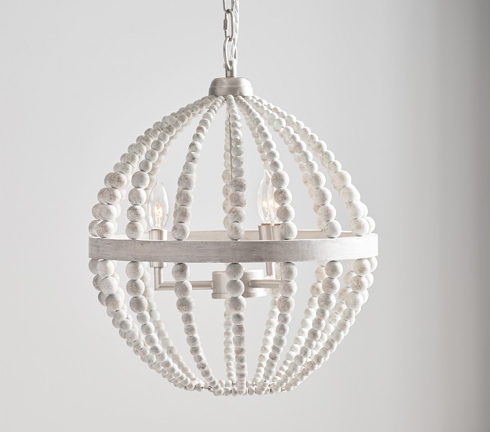 Complete the bedroom, nursery or playroom with Wood Bead Pendant. The natural, rustic piece is designed with two lights to brighten any room with a warming glow.