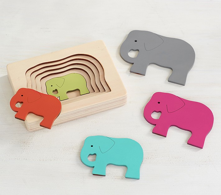 Our Wooden Elephant Puzzle is the sweetest way for little ones to develop their hand-eye coordination, problem solving and motor skills. Brightly hued with water-based paint, these elephants are a classic and safe way to learn.