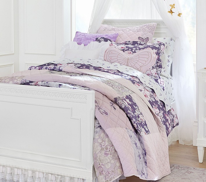 Bring blooming beauty to their bed. Pieced from floral and butterfly prints, this whimsical quilt captures a lovely garden in bloom. Expertly stitched by hand and crafted with pure cotton, our Yvette Patchwork Quilt provides their bed with lasting comfort and style.