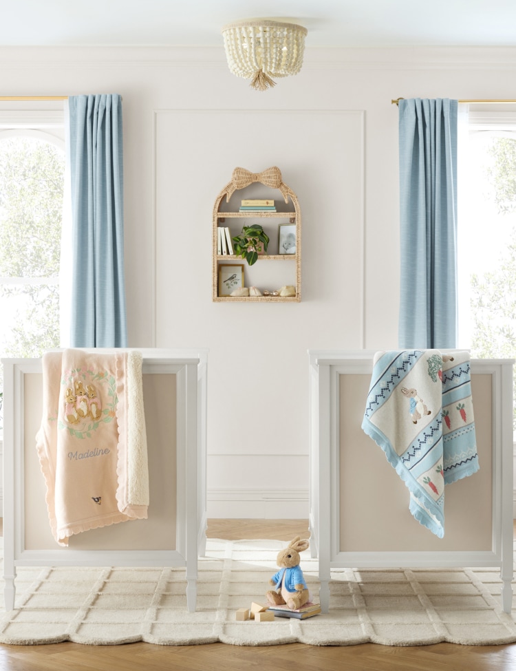 Discover Peter Rabbit crib bedding, crib sheets, bibs, baby pajamas, and room décor to create a nursery that’s as practical as it is enchanting. Whether you’re looking for a thoughtful gift or building your own nursery, our collection offers everything you need to celebrate new beginnings with the charm of Peter Rabbit.