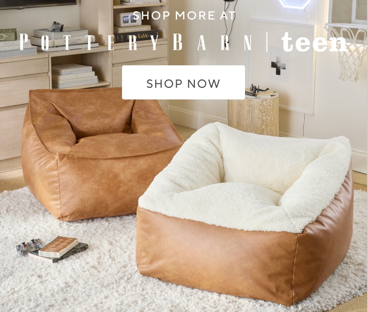 In addition to settees and sectionals, Pottery Barn Kids also has lots of other seating options for kids. There are kids armchairs in a variety of colors and styles that have removable slipcovers, so you can easily wash them. You'll also find desk chairs for your child's study space, along with overstuffed beanbags shaped like cute animals.