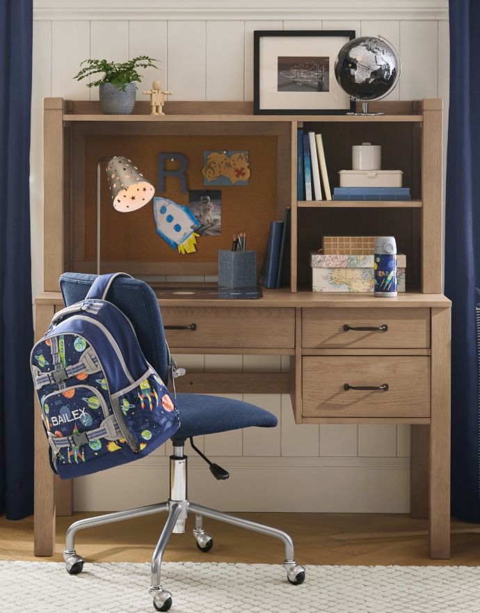 Shop Pottery Barn Kids online now to find a kids study desk and chair for your child. We've also got an assortment of other essentials like big and small bookcases you can use to get your child's work area ready.