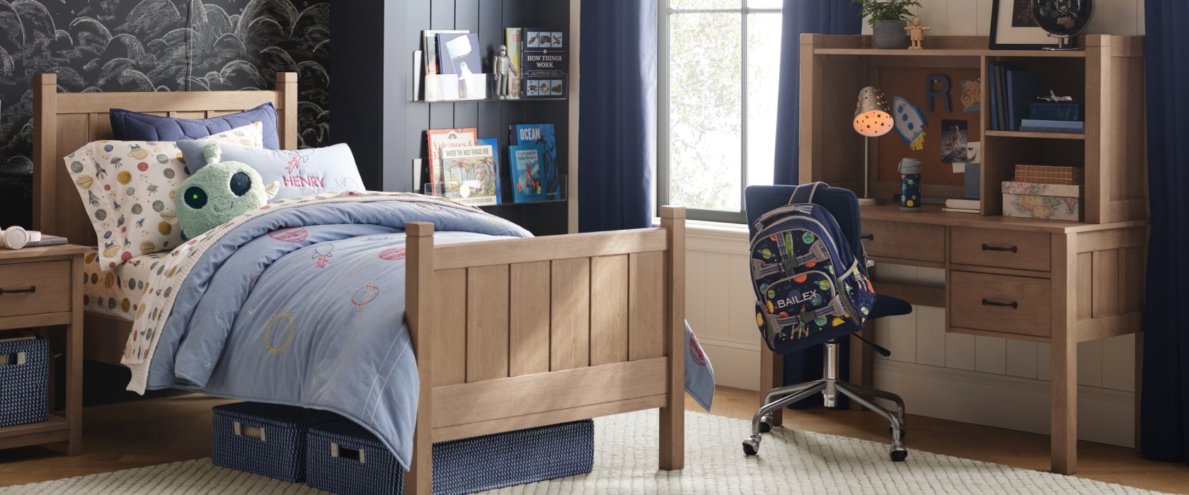 Shop Pottery Barn Kids online now to find a kids study desk and chair for your child. We've also got an assortment of other essentials like big and small bookcases you can use to get your child's work area ready.