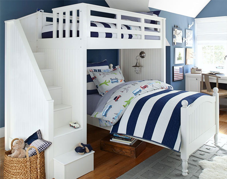 Ready? Set? Go! This simple, crisp room is the perfect space for a little traveller to dream. The bedding's classic nautical stripes set the stage, while our Brody Duvet Cover pays homage to all things that go. Lastly, the classic lines on the furniture offer timeless style that's ready for all your little one's future adventures.
